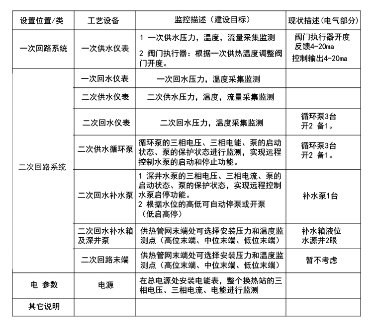 (2)实现对换热站设备运行情况、相关运行参数的实时监控,以及重要管网测点温度、压力数据的在线监测。