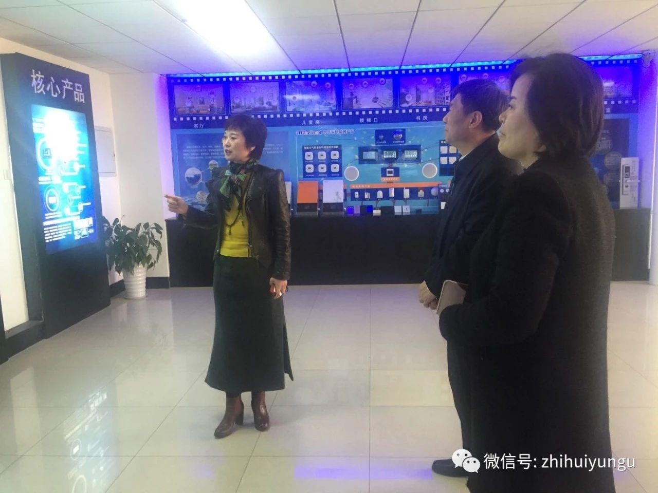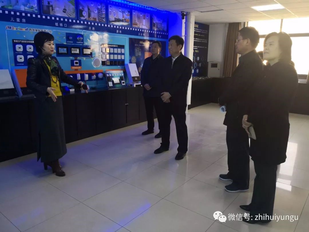 任董特意为李副厅长一行介绍了公司自行研制的新风机,排风双变频,自动调整风量,把呼出的废气排出室外,室外新鲜的氧气输送到室内,过滤过程中无二次污染。打造森林氧吧。为了让下一代先体验智能科技,去年智慧云谷给冰心小学捐赠了价值30万元的新风机,使每间教室都有一台。