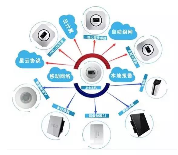 云谷卫士主机是智能家居的传输中心和控制中心,能够连接外部的智能开关、智能插座、电动窗帘等其他电器设备,为智能家居升级留出端口。配套产品包含门窗传感器、人体传感器、多功能遥控器、智能插座、智能开关、空气质量传感器等。