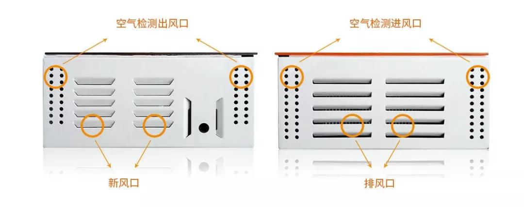 智慧云谷人工智能防病毒新风机上下进出风口呈45°,风向设计最大限度减少风阻,最大风量排出,引进最大风量达到100m3/h,空气在室内实现360度无死角