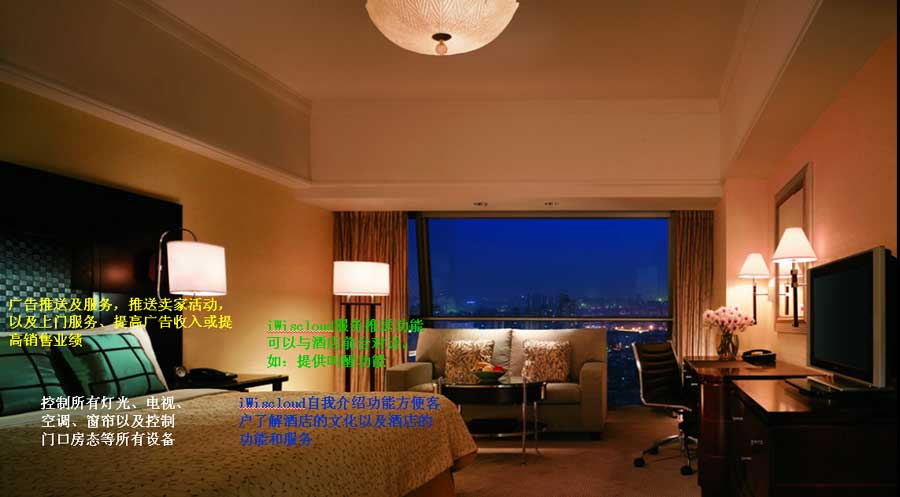 背景图片及LOGO可根据酒店需要定制,并配以符合酒店特色的背景音乐哄托酒店“温馨、舒适”的气氛.